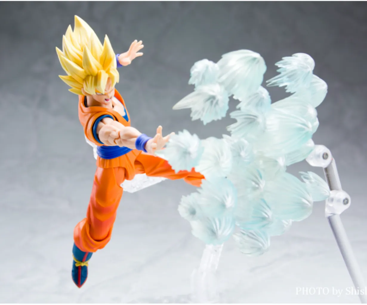 2. Sculpt & Face Plates: Perfectly Recreate the Classic Super Saiyan Moment – Three interchangeable face plates accurately capture Goku’s iconic expressions: roaring fierce, charging focus, and confident smile. The fierce face, with its sharp eyes and open mouth, perfectly recreates the legendary Super Saiyan transformation moment on Namek, immersing you in the atmosphere instantly. – The Super Saiyan blonde hair sculpt is highly precise, with sharp, voluminous details. Paired with transparent effect parts (the Kamehameha/energy blast effects in the photo), the combat intensity is fully amplified, delivering 100% stunning photo results. – The costume details are well-executed: crisp folds on the orange gi, distinct blue wrist guards, and clear color separation on the belt—overall look nearly identical to Goku in the anime, evoking strong nostalgia. ###